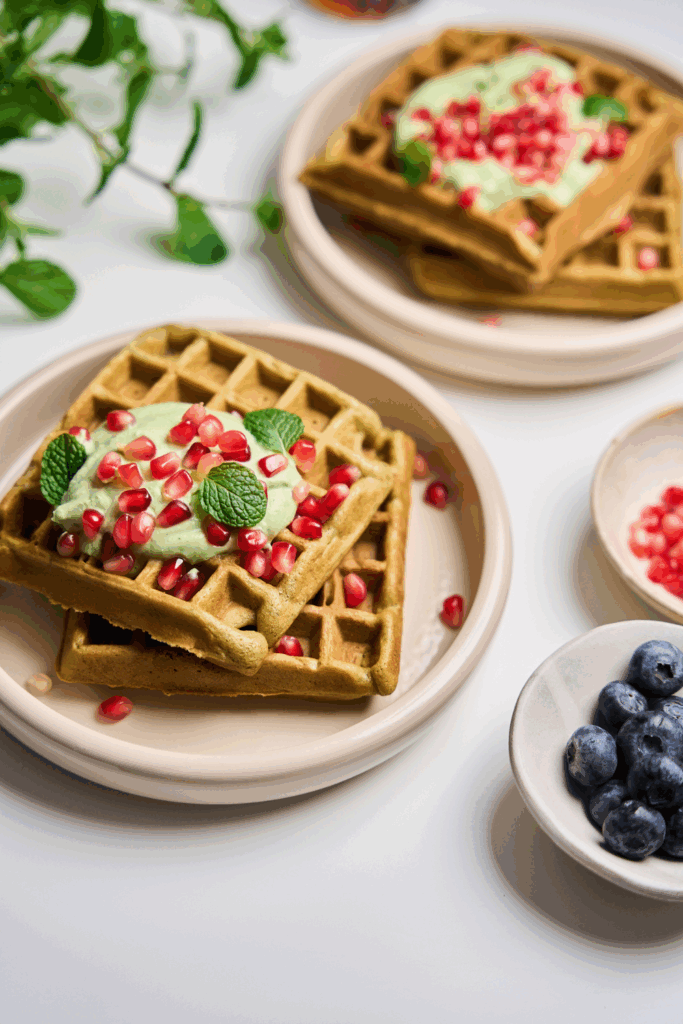 Our tip: In addition, you can garnish the waffles with maple syrup, mint leaves or sprinkle with a little matcha.
